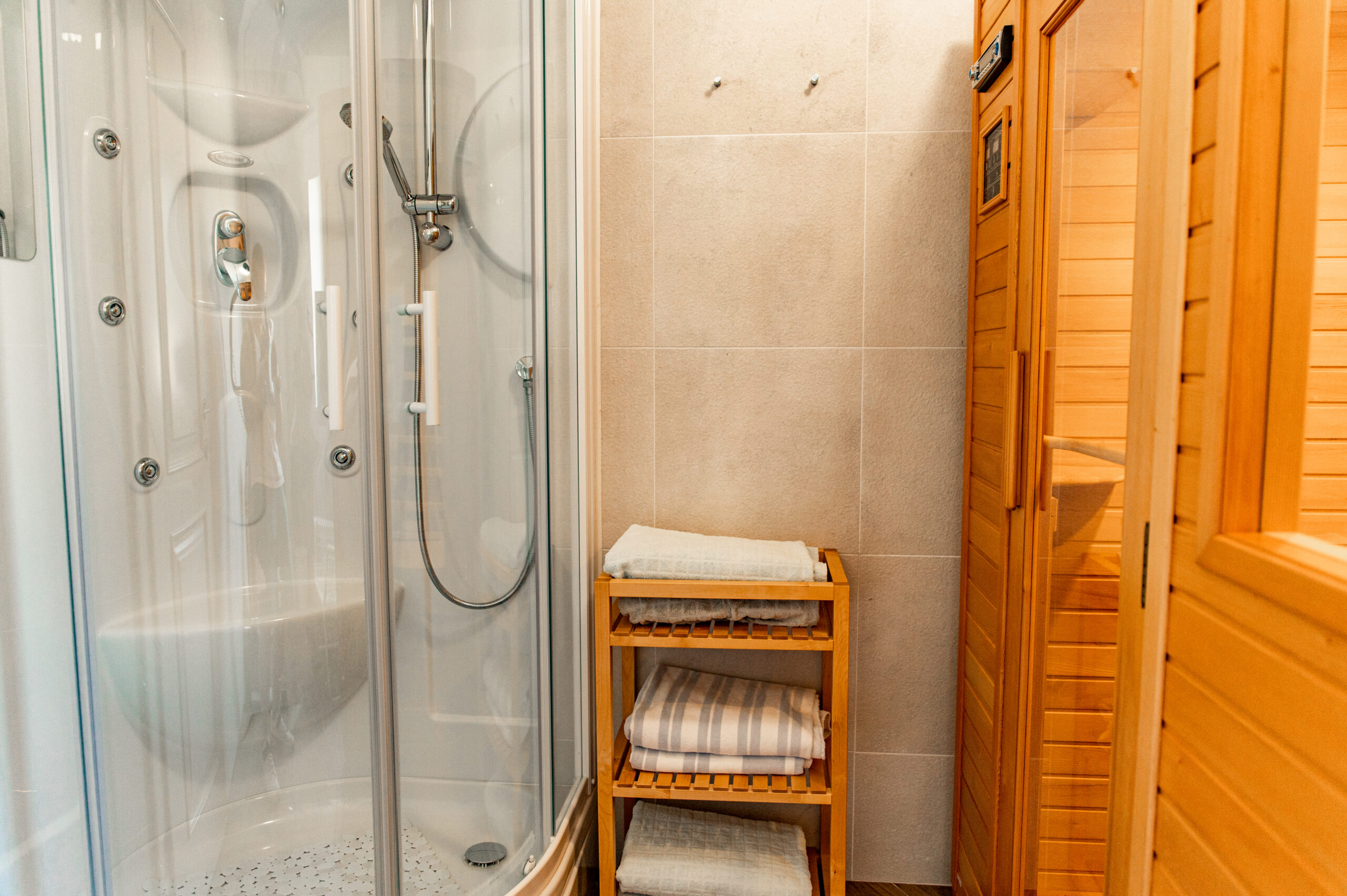 U prizemlju se uz kupaonicu sa tušem nalazi još jedan dodatan toalet. Kauč u dnevnom boravku ima funkciju razvlačenja, a u roditeljskoj spavaćoj sobi nalazi se i dječji krevetić.